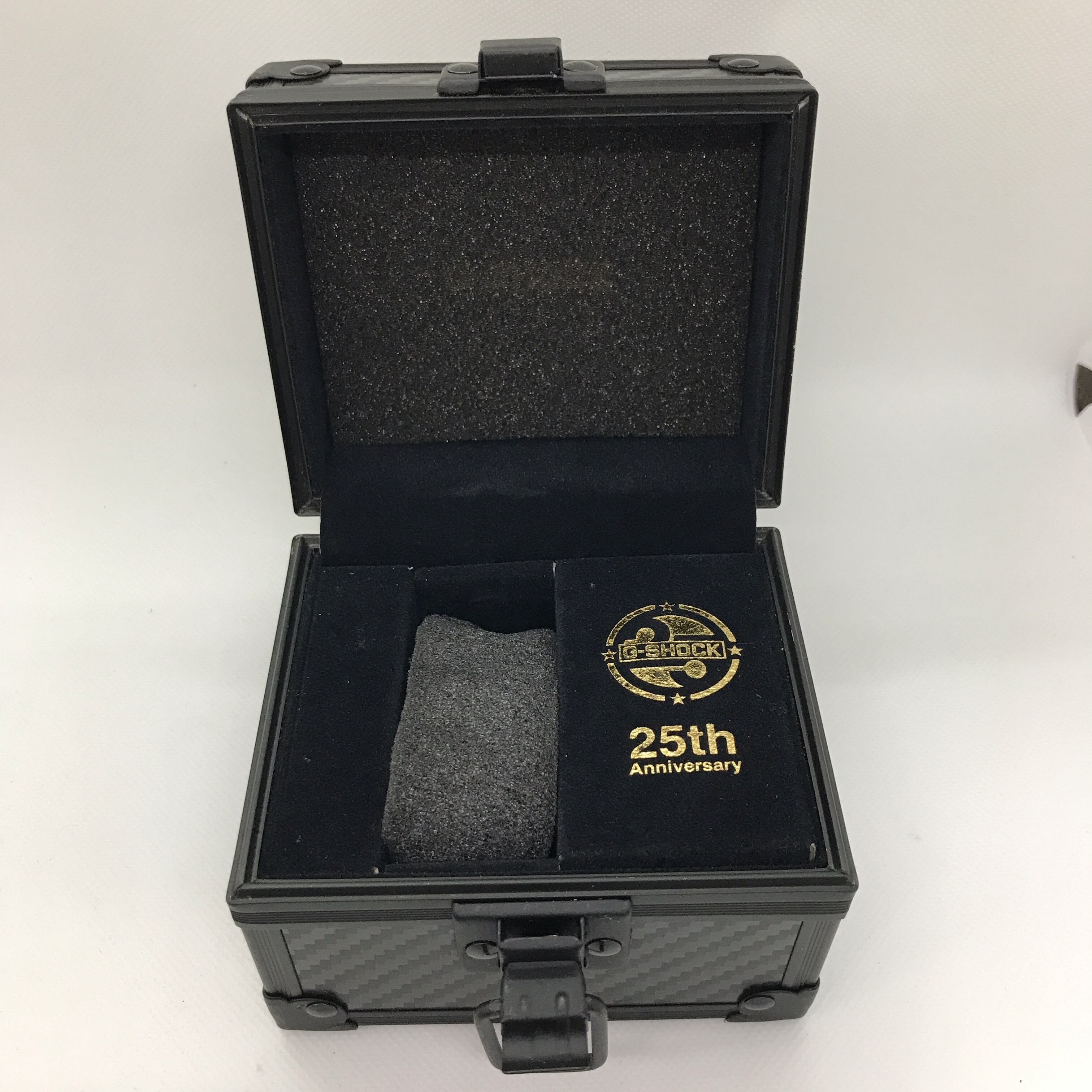 記念ロゴ: 裏蓋には、25周年記念モデルの証として、グラフィックアーティストのエリック・ヘイズ氏がデザインした25周年記念ロゴが刻印されています。