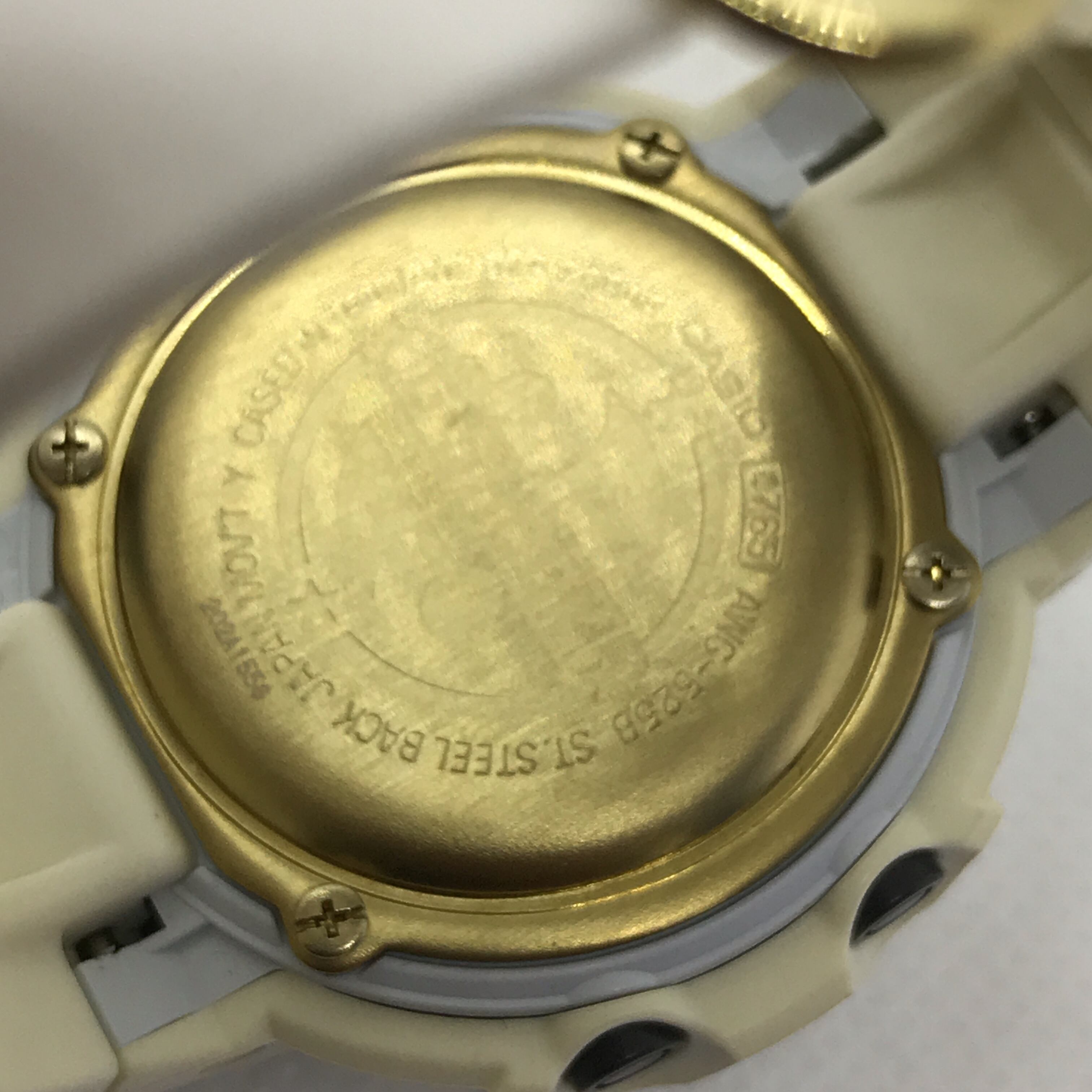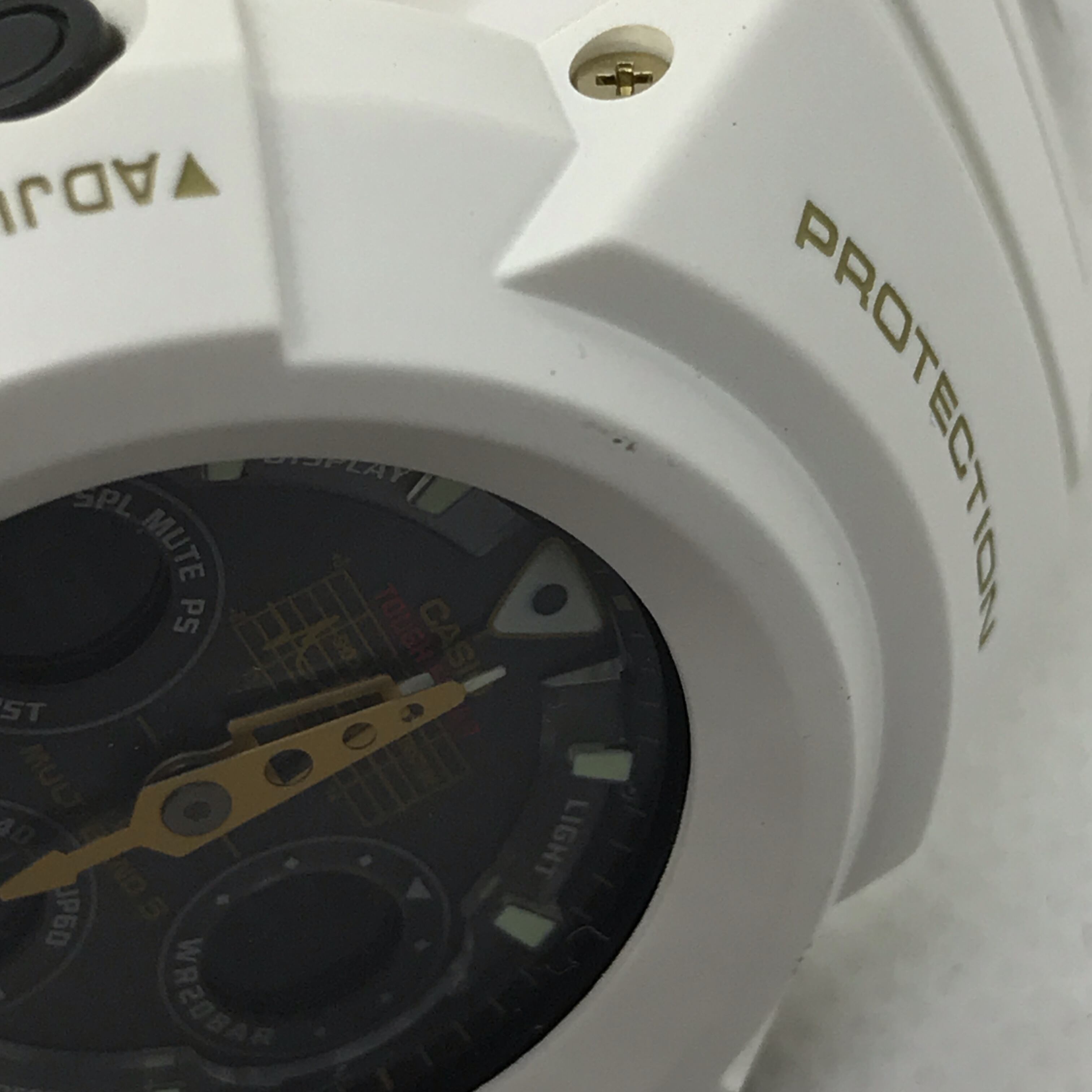 カラーリング: 光沢のあるホワイトを基調としたケースとバンドに、液晶や各メタルパーツにはスペシャルカラーのゴールドを組み合わせ、クールなホワイトに華やかさを加えています。