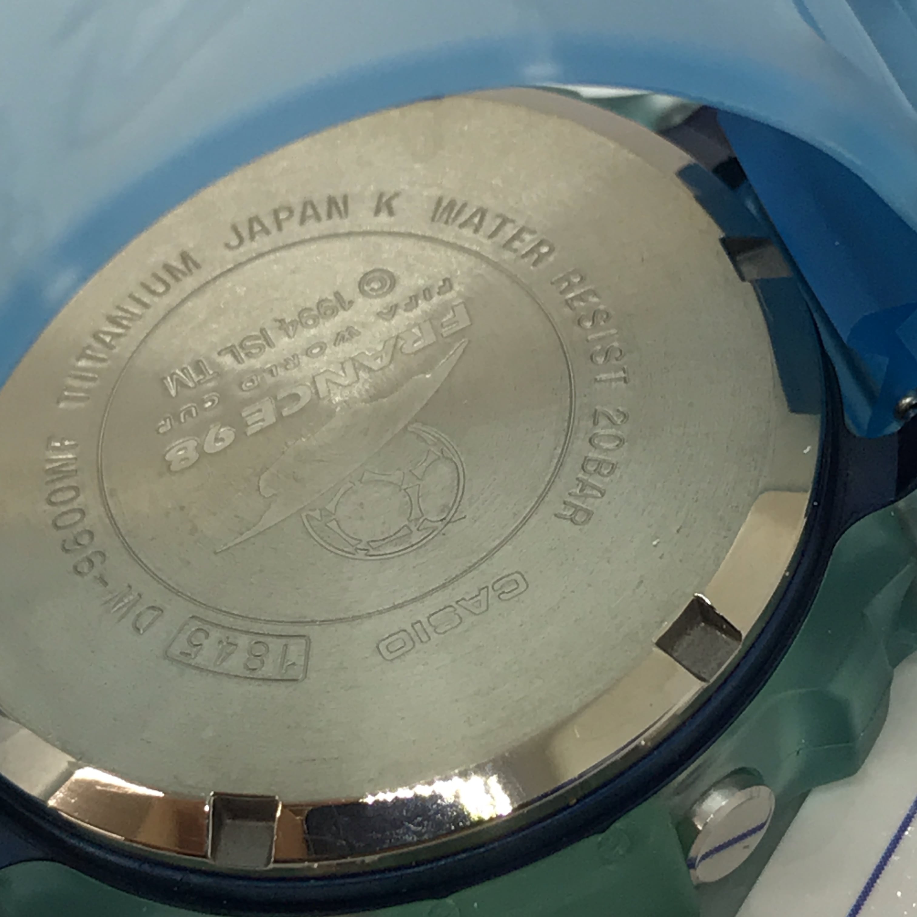 DW-6900WF: 98年ワールドカップモデルとして最も多く販売されたモデルのひとつで、ELバックライトに公式マスコットであるフティックスが浮かび上がるのが特徴です。
