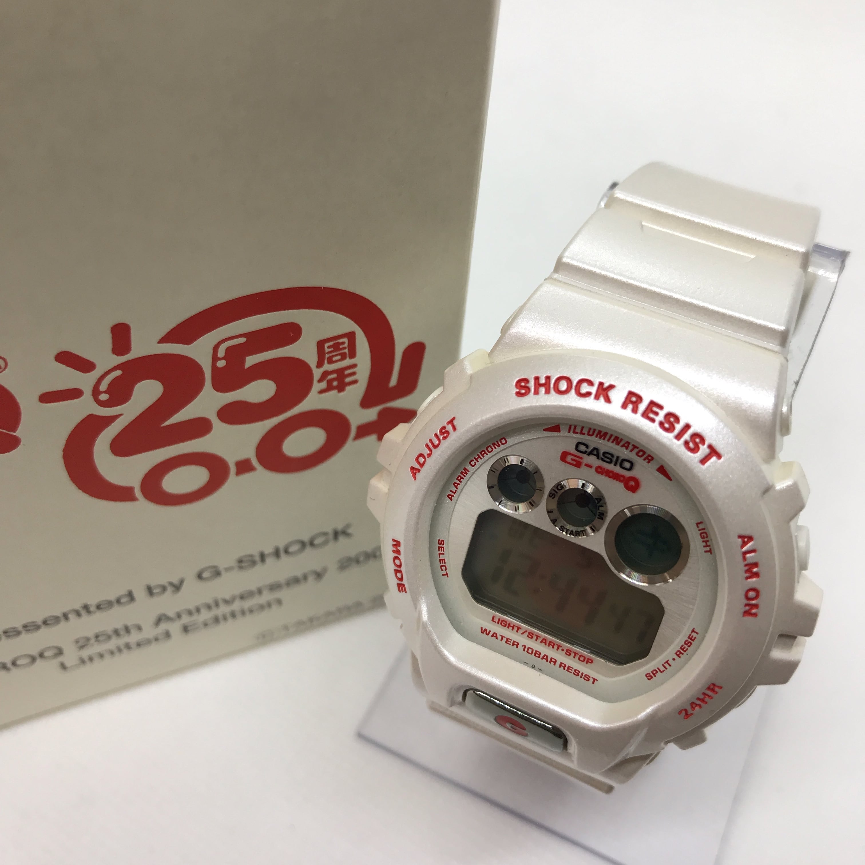 カシオ G-SHOCK GZX-690LV チョロQ25周年限定モデルは、タカラ(現タカラトミー)のミニカー「チョロQ」の誕生25周年を記念して、2004年に999本限定で生産されたコラボレーションモデルです。ベースモデルには、ラウンドフォルムに3つのグラフィック表示窓を備えた「G-SHOCK 6900」シリーズが採用されています。