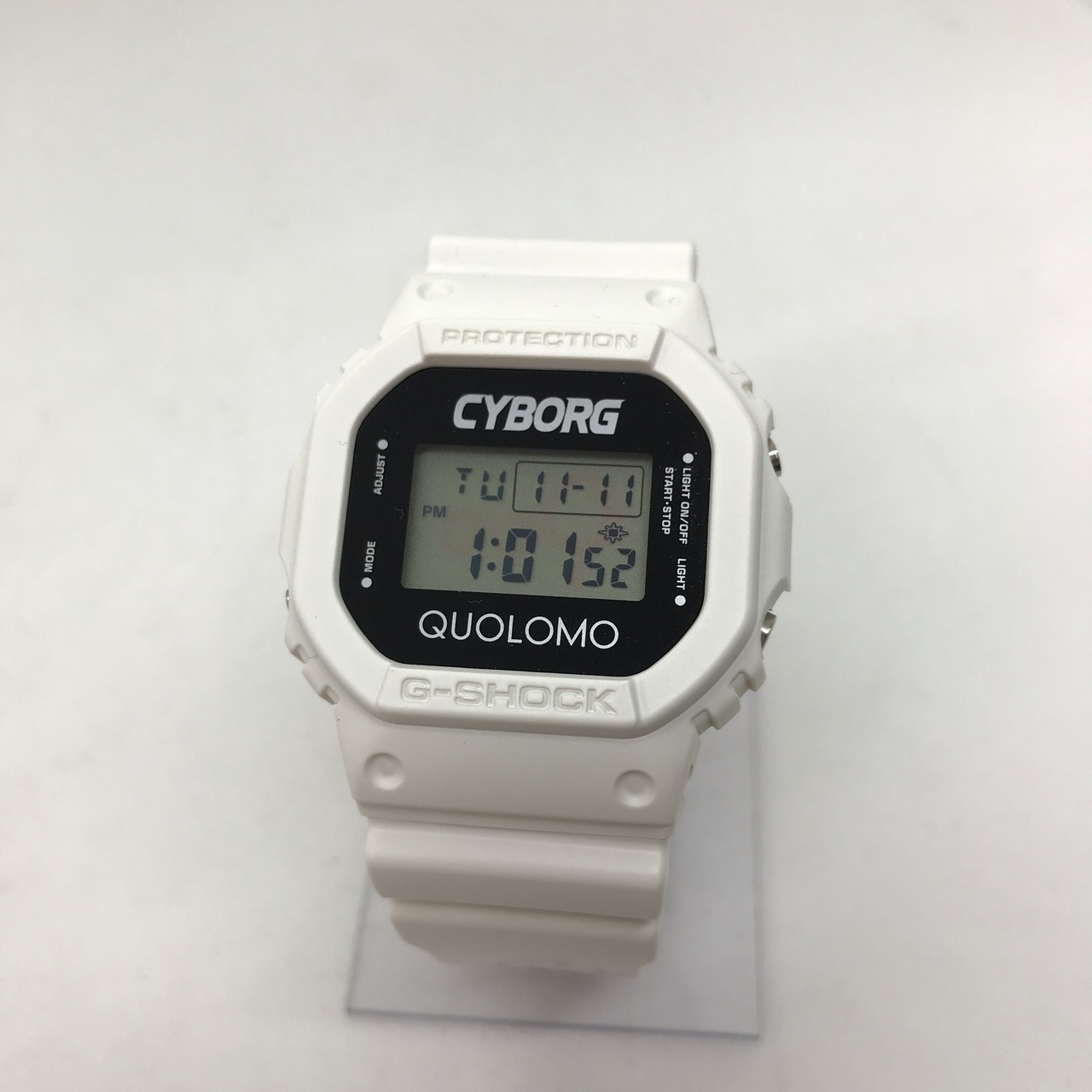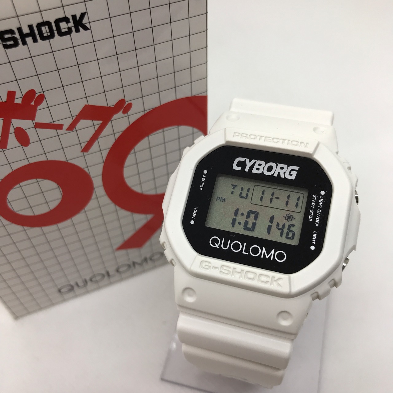 デザイン: G-SHOCKのオリジンであるスクエアフェイス「DW-5600」シリーズをベースに、アニメ「サイボーグ009」の世界観を取り入れたデザインです。具体的には、ホワイトのケースとバンドに、コラボレーション独自のグラフィックやロゴが施されています。
