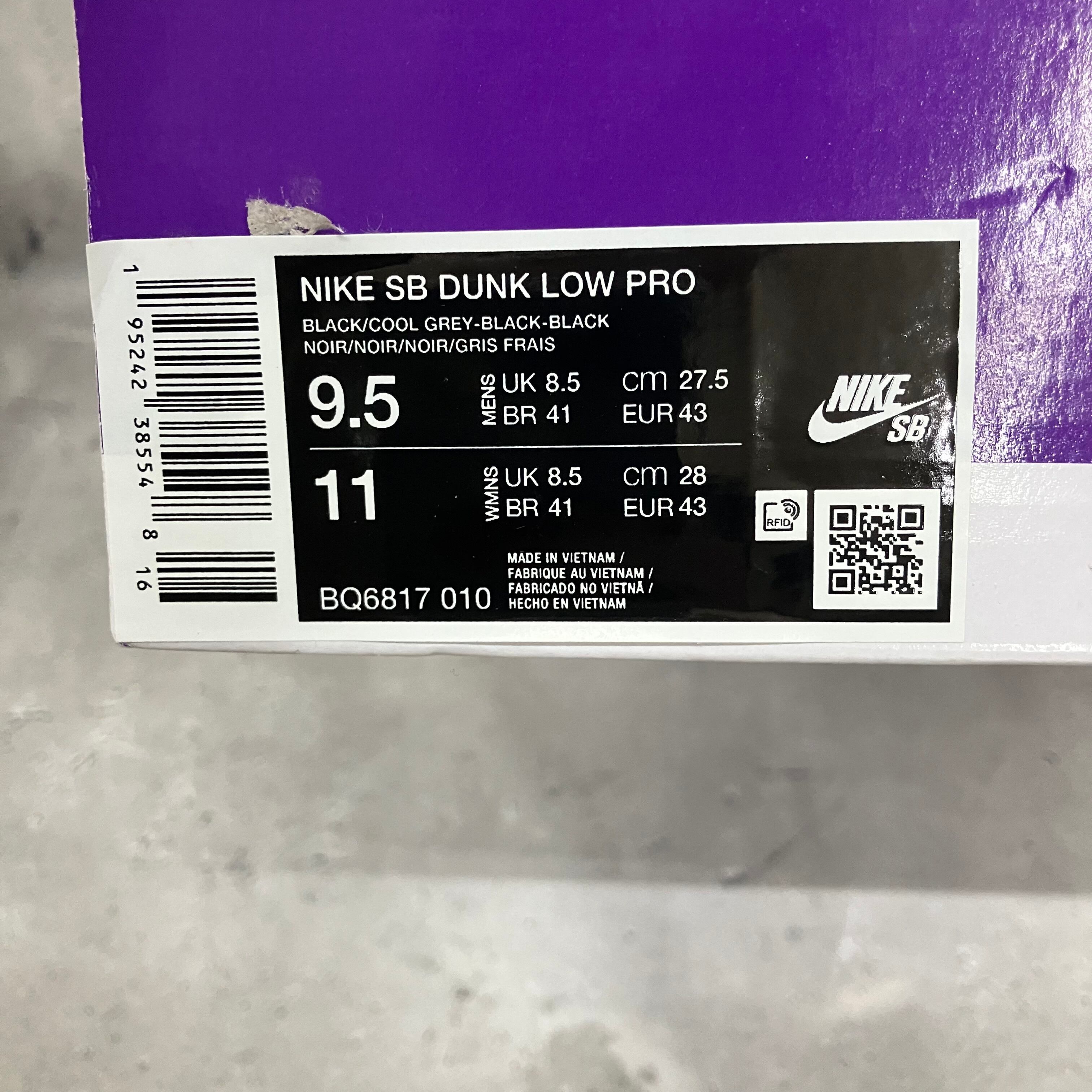 Nike SB Dunk Low Pro "Black/Fog" A9AJK115401 f216