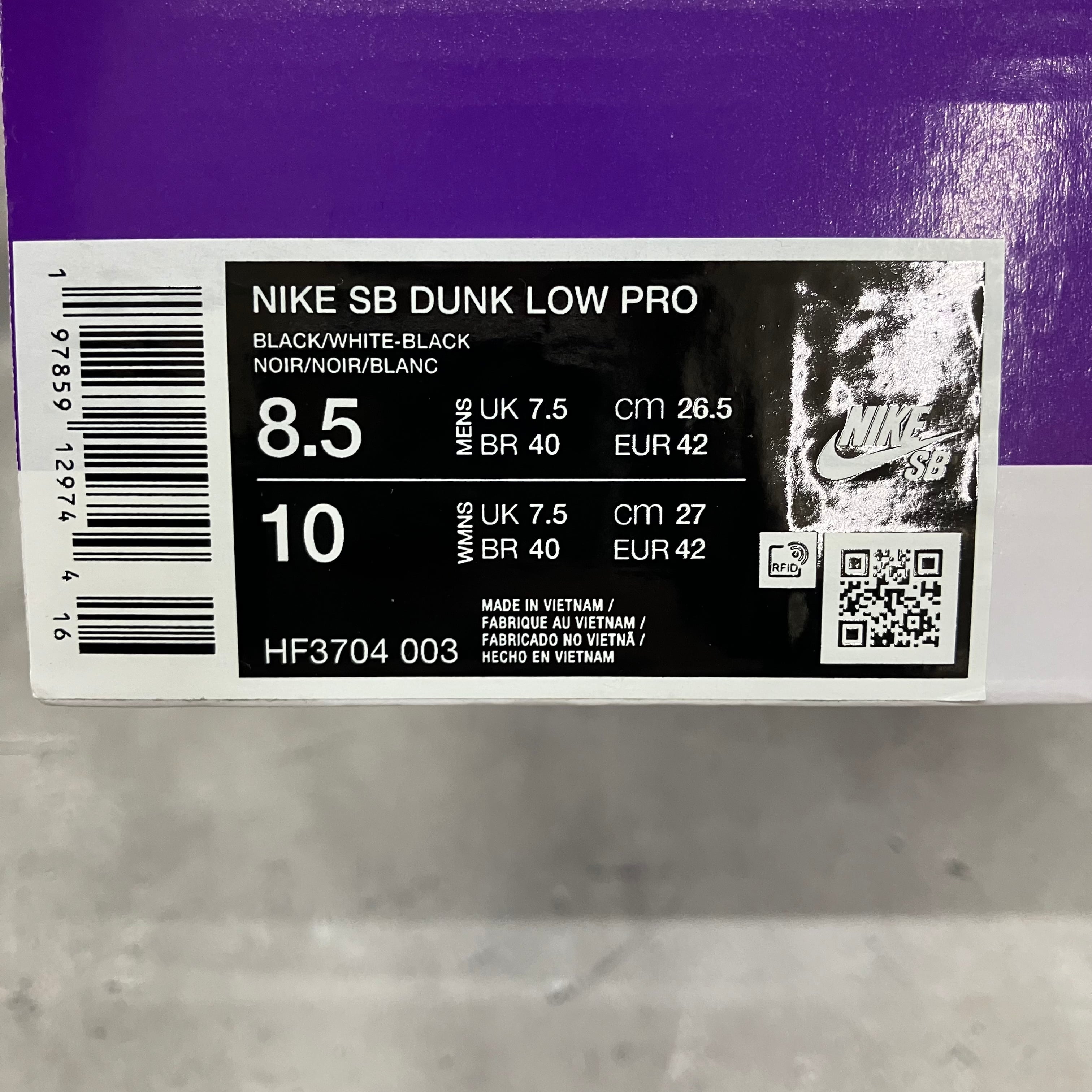 Nike SB Dunk Low Pro "Black/White" A9B4J361800 f216