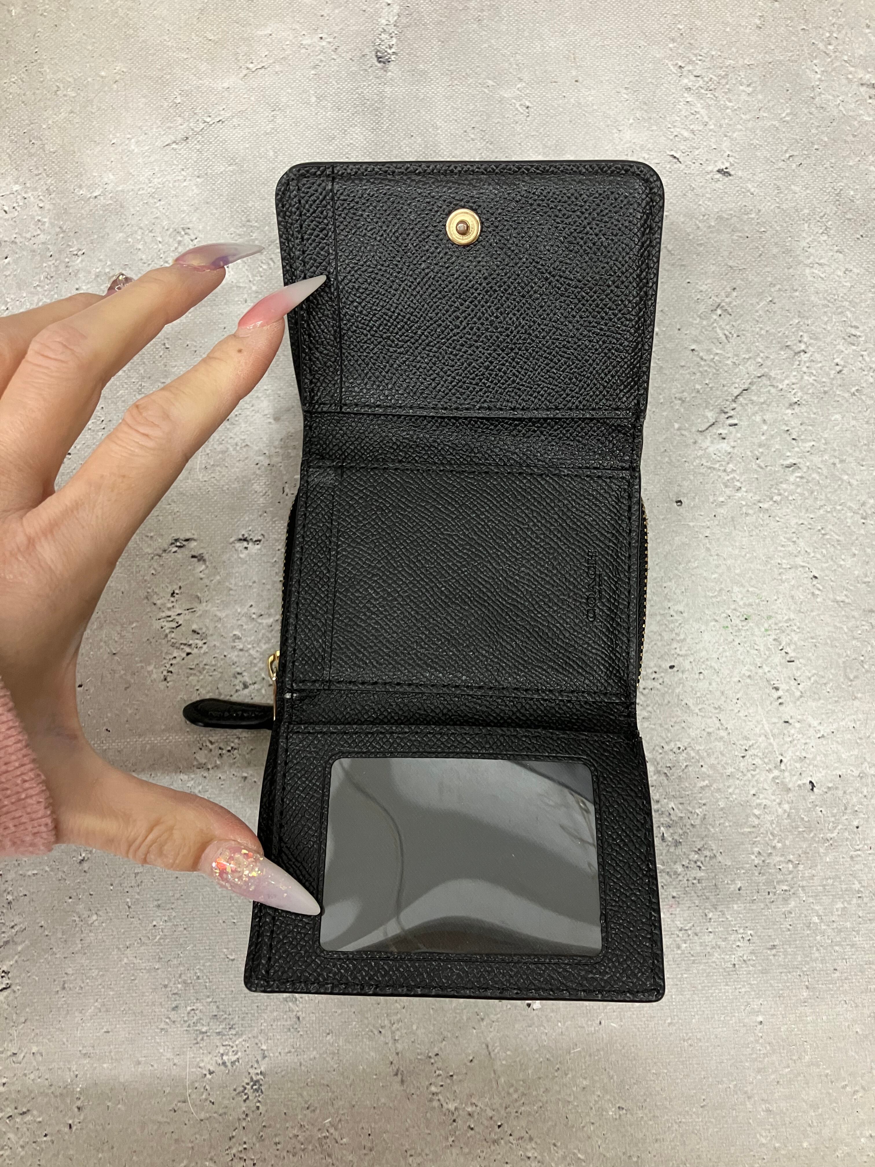 コーチの「スモール トライフォールド ウォレット(型番: F37968)」は、コンパクトながらも必要な機能を備えた三つ折りミニ財布です。