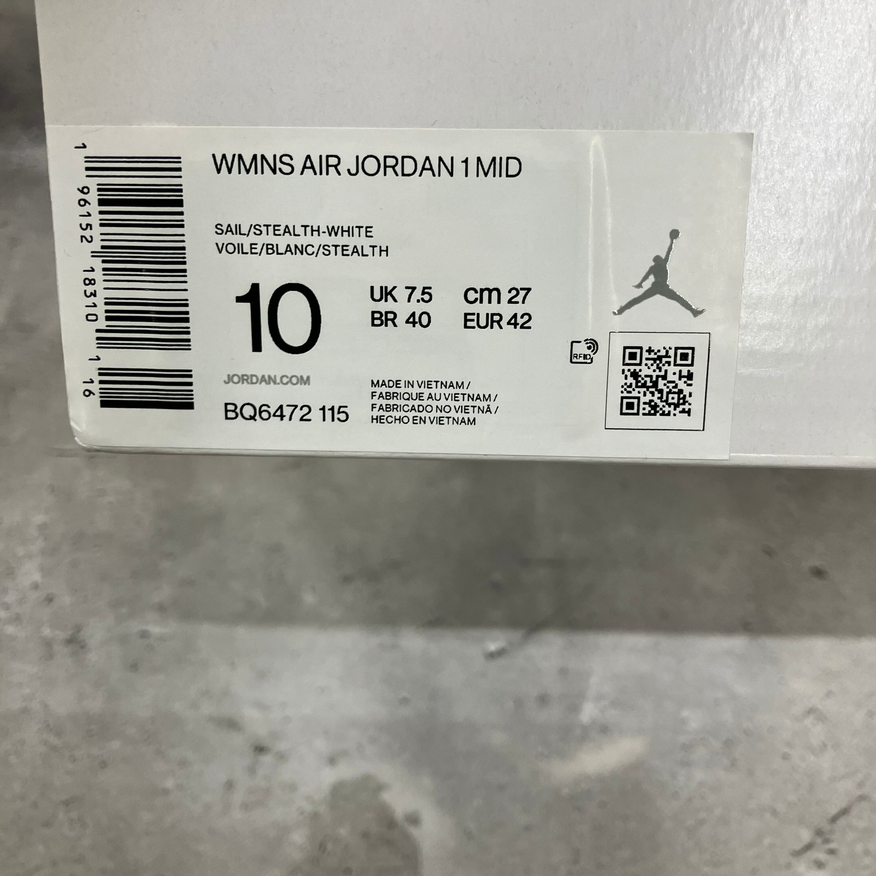 Nike Women's Air Jordan 1 Mid "Grey/Sail" AA34B213803 f216
